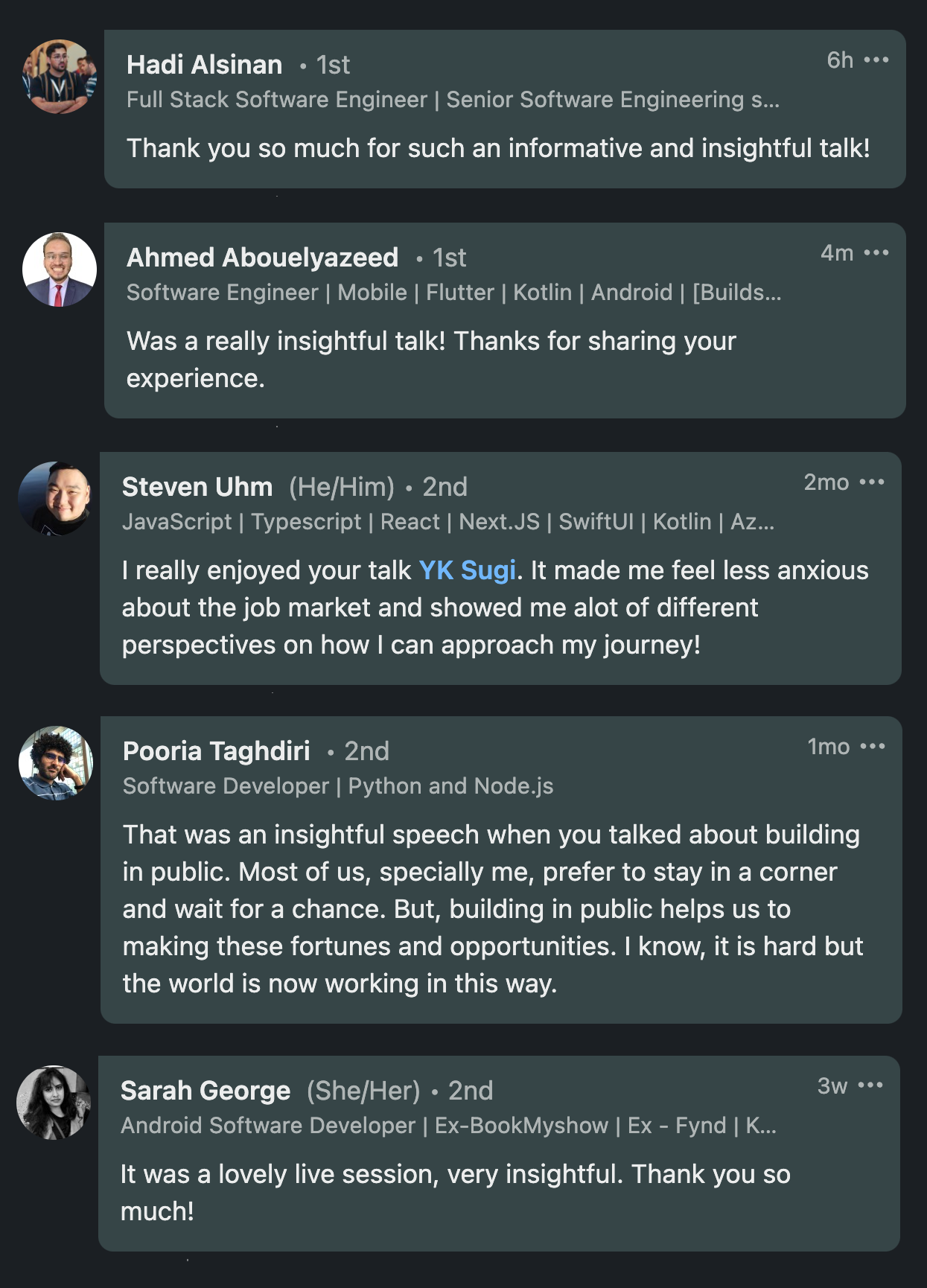 Testimonials (excerpts from LinkedIn)